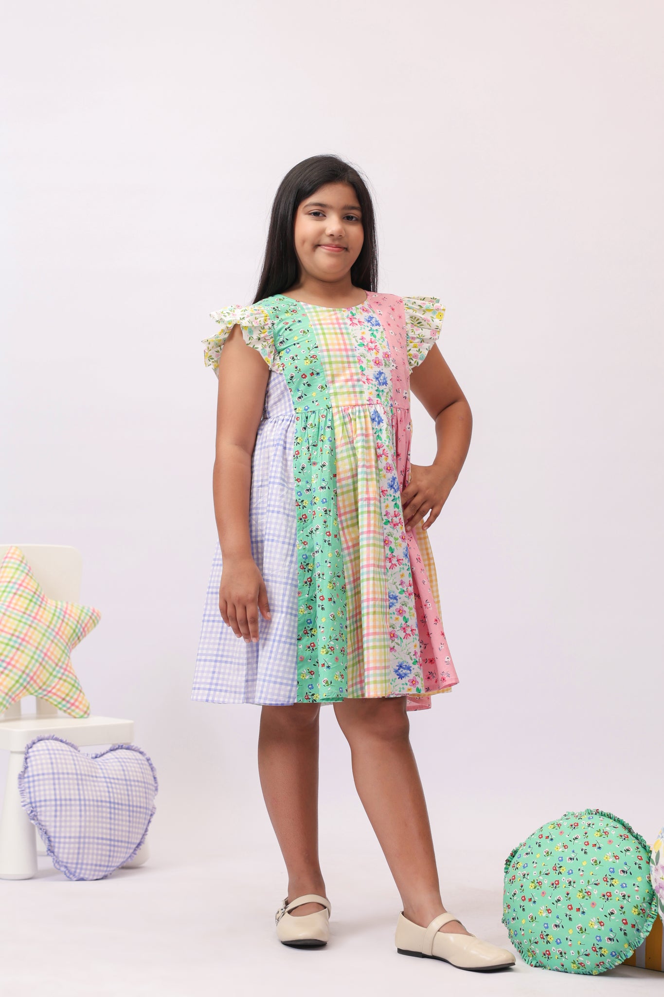 Confetti Patchwork Floral Check Dress for Girls